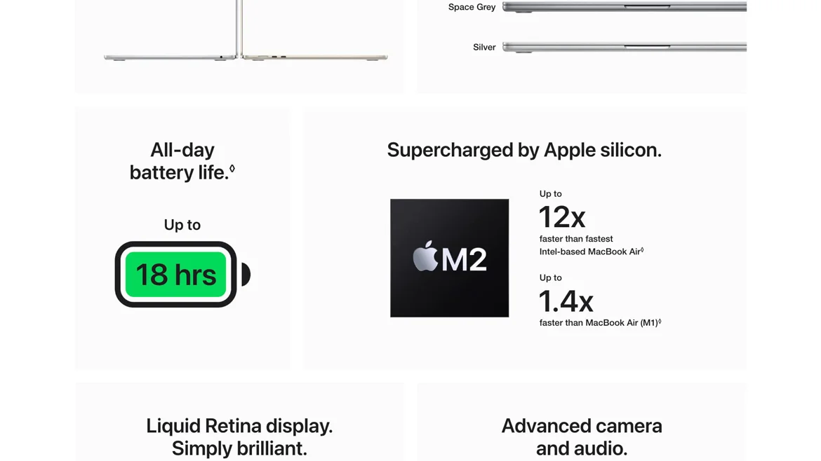 • Go all day and into the night, thanks to the power-efficient performance of the Apple M2 chip.